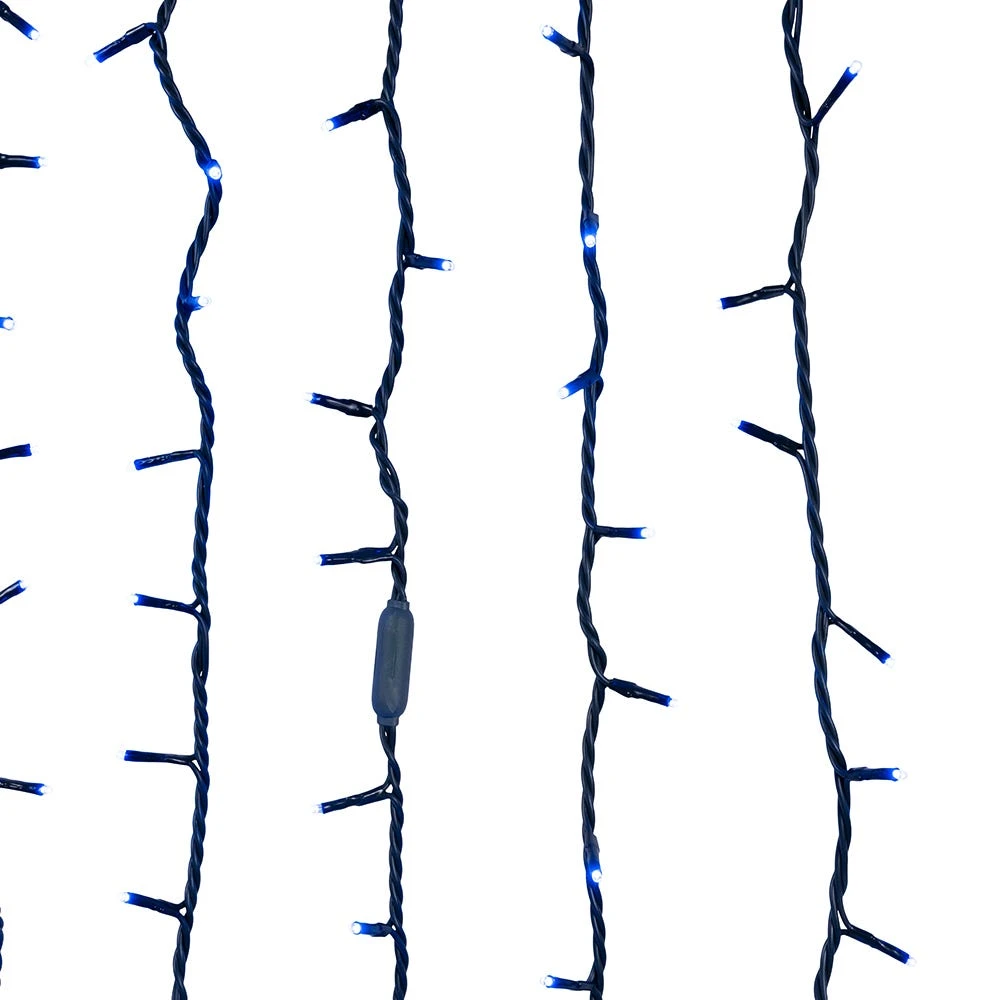 These blue LED lights are perfect for both indoor and outdoor use, creating a captivating and festive atmosphere. This light set features 300 energy-efficient blue LED bulbs that emit a brilliant and vibrant blue light. Blue is a classic and elegant color choice for holiday decorating, creating a serene and enchanting ambiance. The lights are mounted on a green wire, which seamlessly blends with greenery, wreaths, and other decorative elements, making them easy to conceal and incorporate into your decor. These lights are UL (Underwriters Laboratories) certified, ensuring they meet safety and quality standards, making them safe for use both indoors and outdoors. The bulbs have a 3MM size, providing a compact and sleek appearance while delivering a bright and evenly distributed glow. The string of lights measures an impressive 50.7 feet in length, offering ample coverage to decorate large trees, wrap around structures, or create dazzling displays. The lights are connectable, allowing you to link up to 15 sets together for expansive and stunning lighting arrangements. LED bulbs have a longer lifespan, making them a durable and cost-effective lighting solution that can be enjoyed for multiple holiday seasons. Whether you use them for indoor decorations, outdoor displays, or to create a breathtaking holiday lighting show, these blue LED lights will add a touch of elegance and charm to your space. This light set is a versatile and captivating lighting choice for your holiday decor. Whether you want to create a winter wonderland outdoors or bring a serene and cool ambiance indoors, these blue LED lights will provide a dazzling and enchanting glow, making your holiday celebrations even more magical.