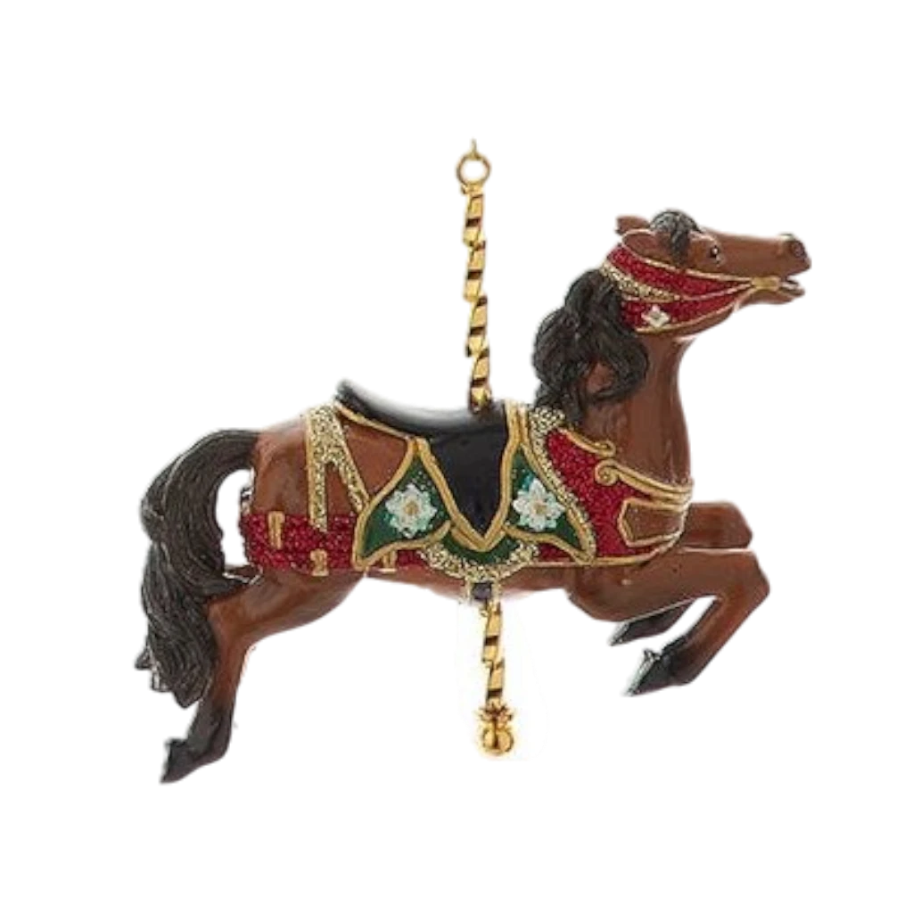Kurt Adler Resin Carousel Ornament – Brown Jumping Horse