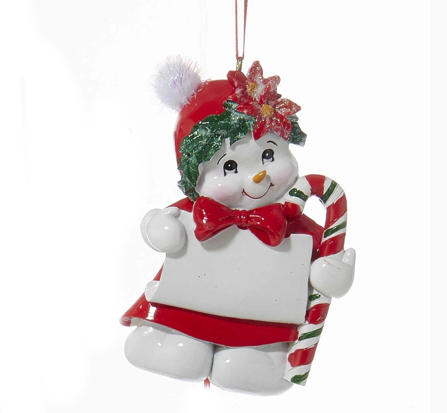 These snow kid ornaments for personalization from Kurt Adler are a delightful addition to any holiday decor or Christmas tree. A snow kid wearing a red hat with holly,